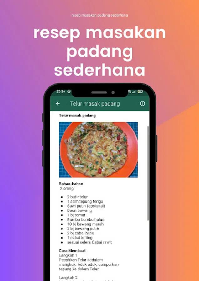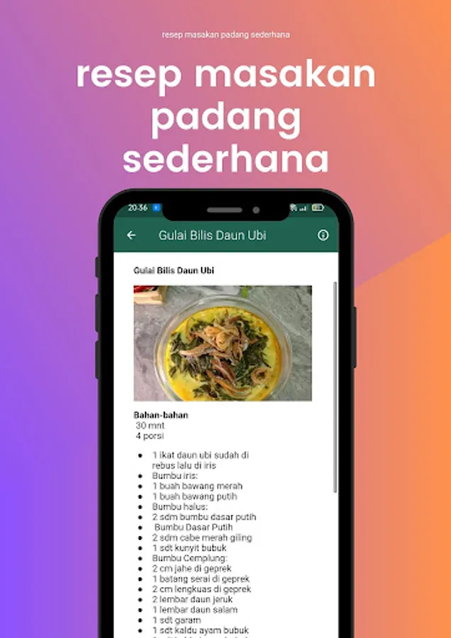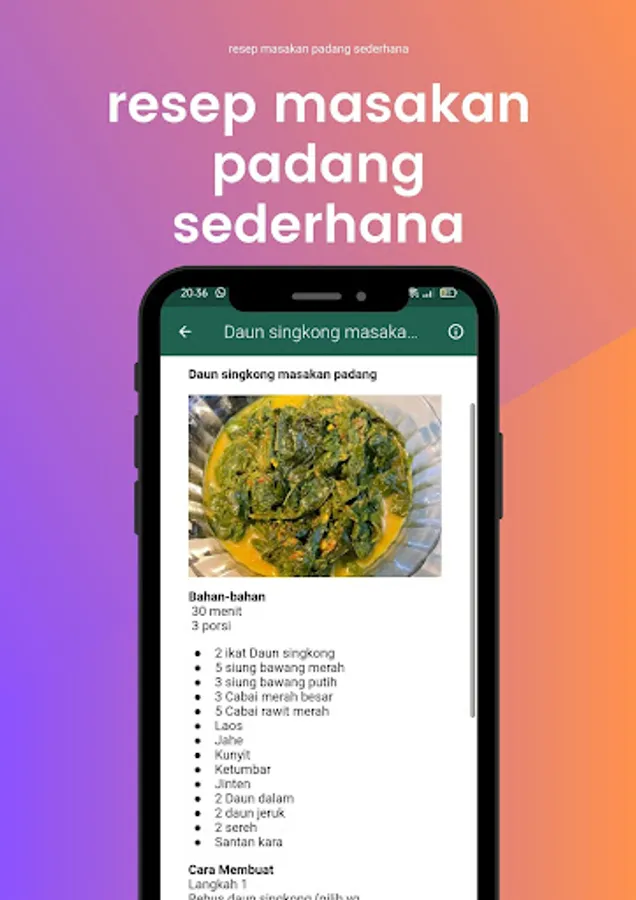 This application is perfect for those who want to learn how to cook Padang cuisine or want to try new variations in everyday dishes. In addition to recipes, this application also provides detailed information about the ingredients needed, how to make it, and tips for cooking delicious and delicious Padang cuisine.