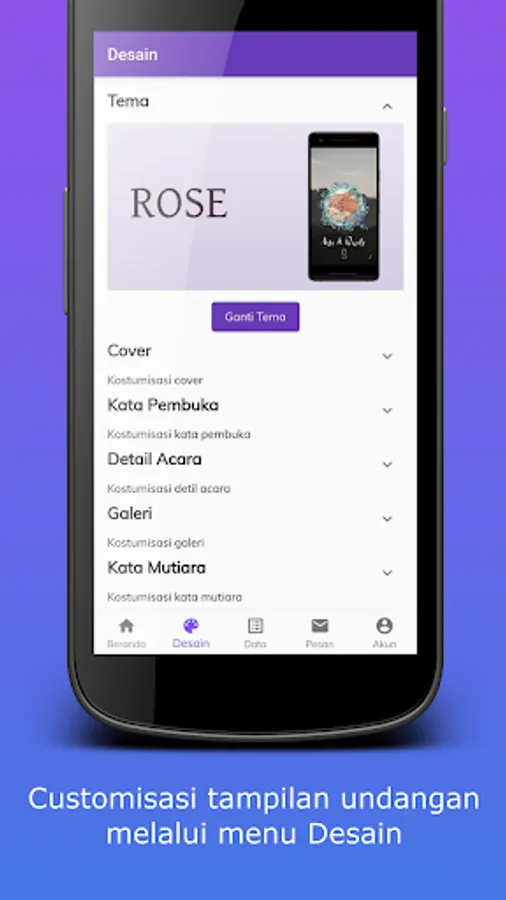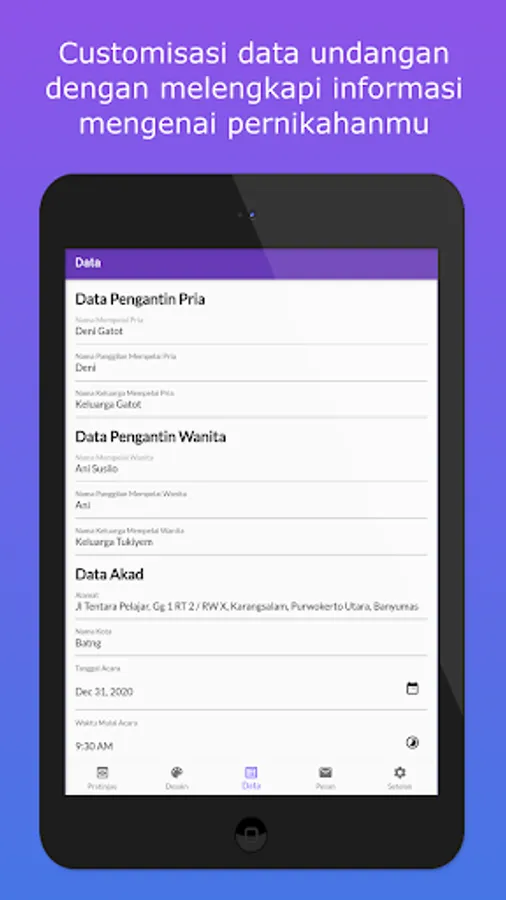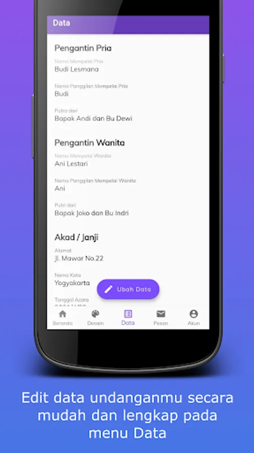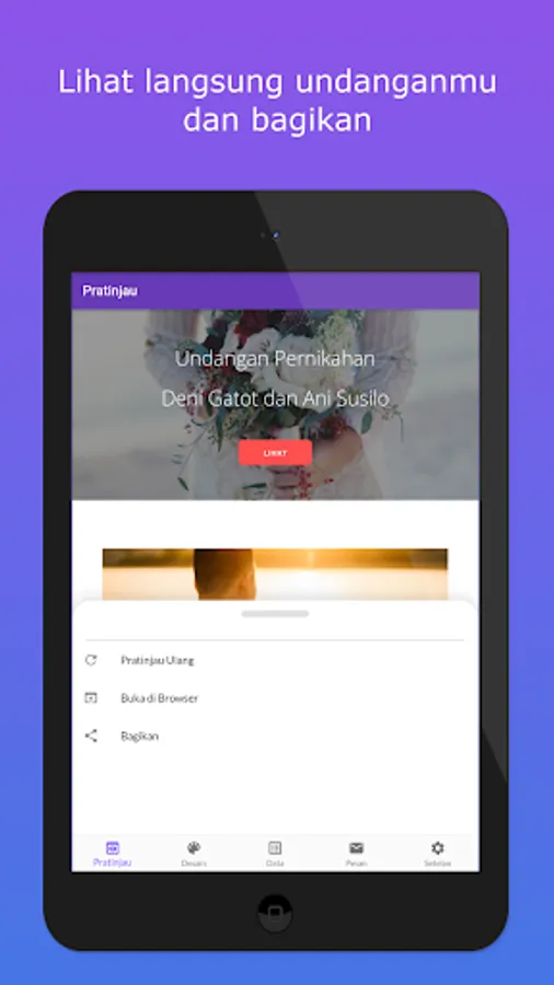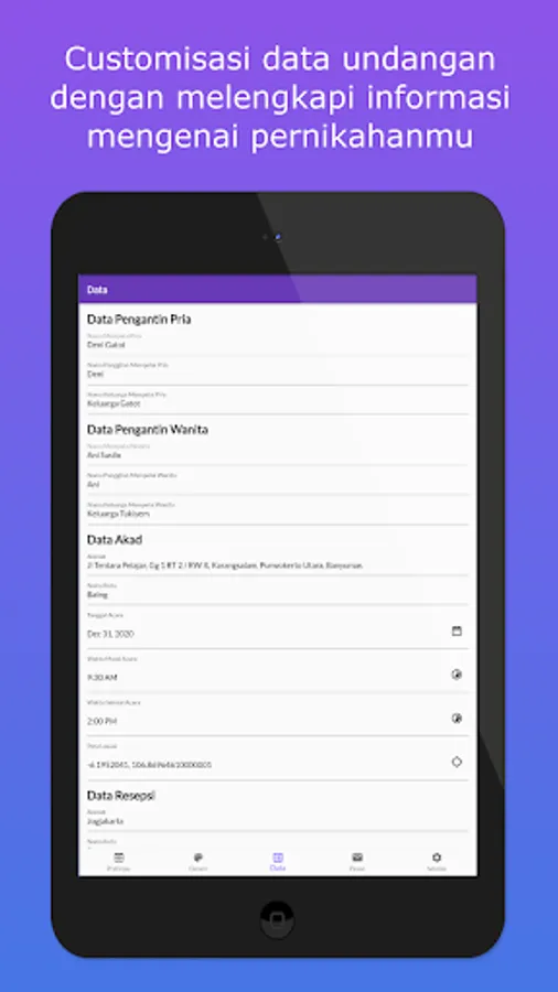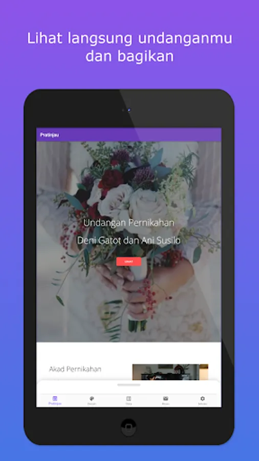 With this application, you can easily make digital wedding invitations. Just install, register, and fill in the data, your invitation will be ready.