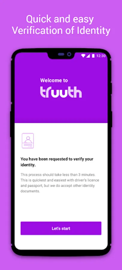 We know verifying your identity is a hassle. That’s why we’ve designed Truuth ID to be the quickest and easiest way to do it.