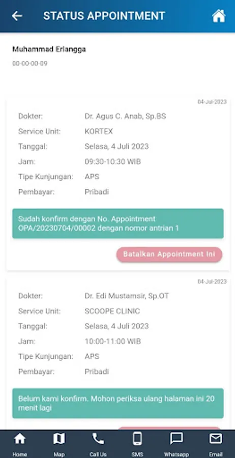 Apps for viewing practice schedules, bookings, viewing queues, and history at Locus Medhub Surabaya