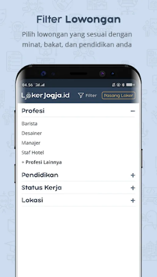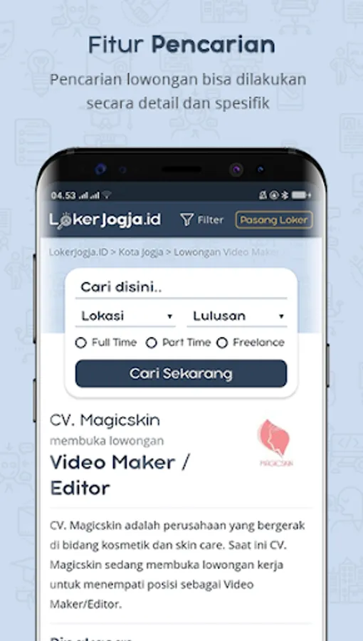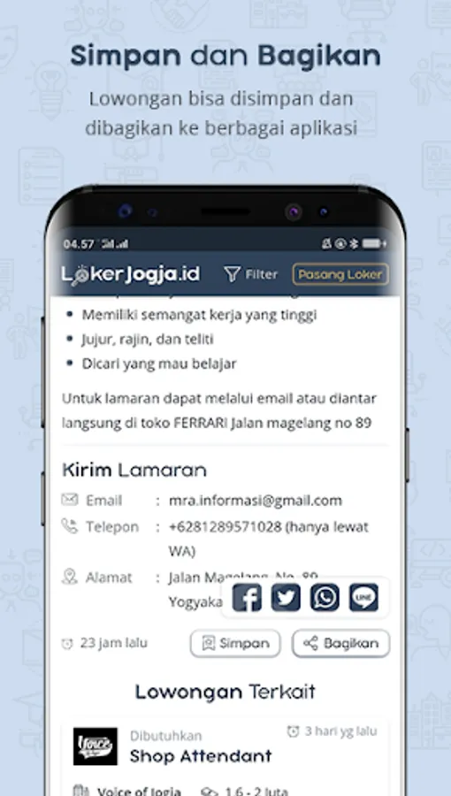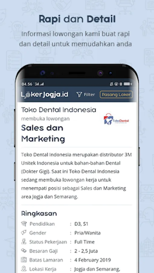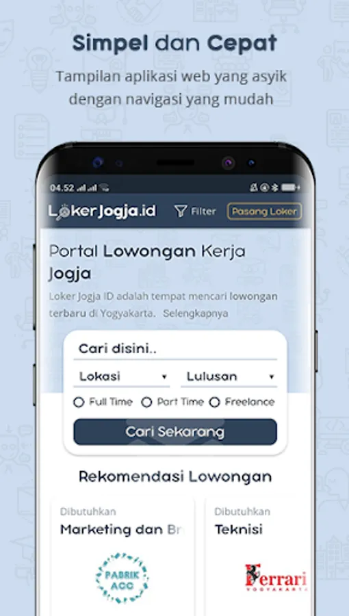 JOGJA LOKER is an application created by LokerJogja.ID which is a job vacancy platform no. 1 in Yogyakarta to make it easier for Android smartphone users to get the latest Jogja job information directly from their handsets.