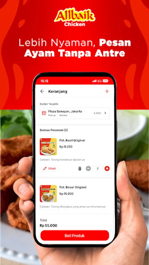 Kini kamu bisa nikmati berbagai menu Allbaik Chicken dengan memesan menu favoritmu cukup dari layar smartphone!