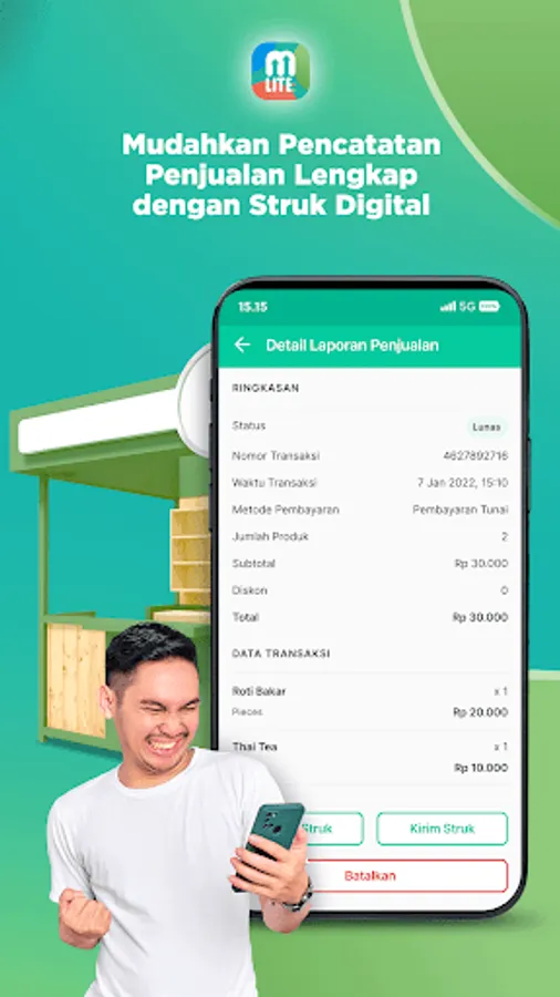 Cetak dan kirim struk kepada pelanggan melalui WhatsApp, SMS, dan Email