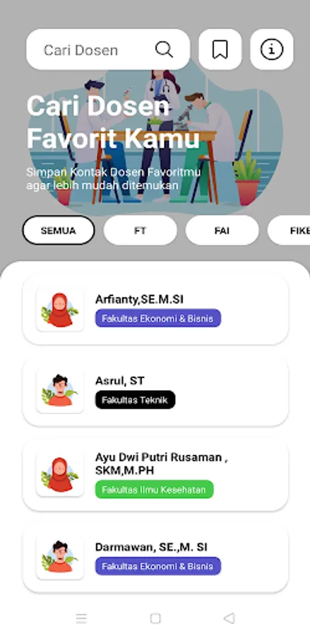 Applications to help find information about umpar lecturers such as NBM, phone numbers, etc., chat templates and bookmarks are also available