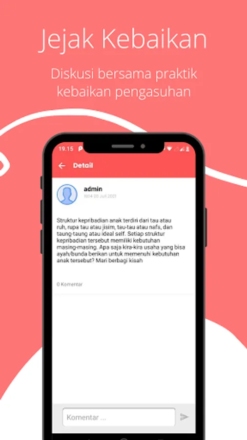Parents must continue to grow to be good people, especially for children. We believe that civilization is only born from the doors of houses that give birth to civilized children through CIVILIZED parenting (Blessing, Safe, and Happy). That's why the counselor comes as part of our efforts to open the faucets of happiness from every place we know as a home. We try to facilitate meetings with the good intentions of each of us who are members of this forum.
