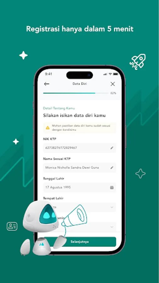 Pembukaan rekening Makmur dilakukan sepenuhnya secara online dan gratis. Kamu tidak perlu print dokumen atau datang ke kantor Makmur. Kamu hanya perlu menyiapkan KTP.