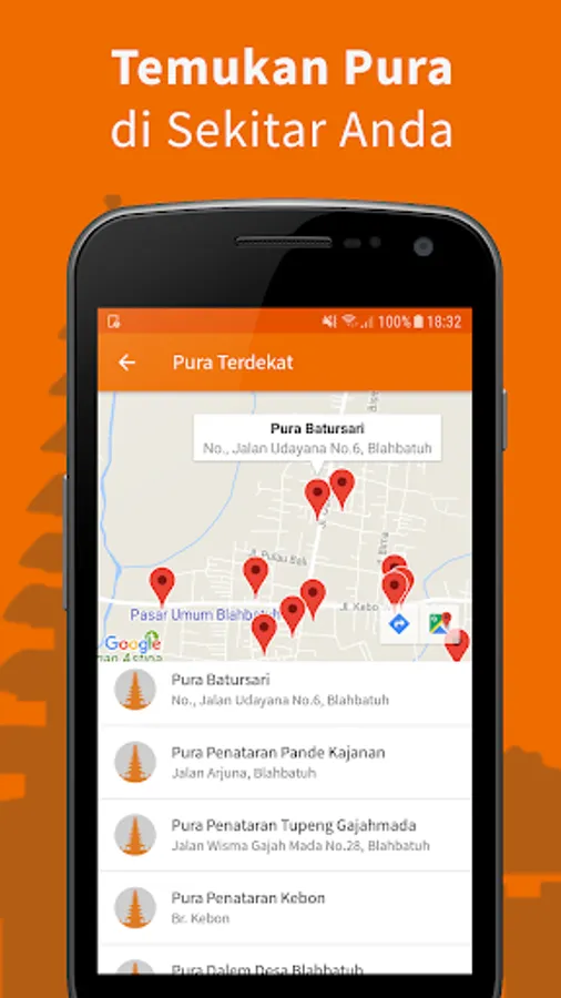 - Pura: Do not be confused to find the nearest temple. Locate the nearest temple according to the location of GPS / Internet you