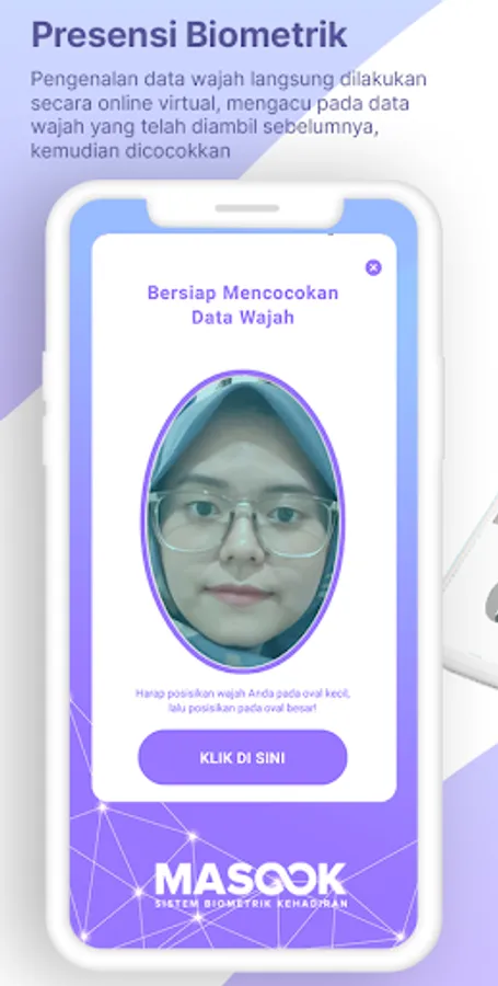 Masook is an online biometric attendance service system that uses face detection and lifeness detection as authentication. Masook can also be used when there is no internet network (offline). Masook service integration is very flexible, so that it can be integrated with various existing services. Masook can also be tailored to the needs of any agency / organization that wants a different presence method mechanism