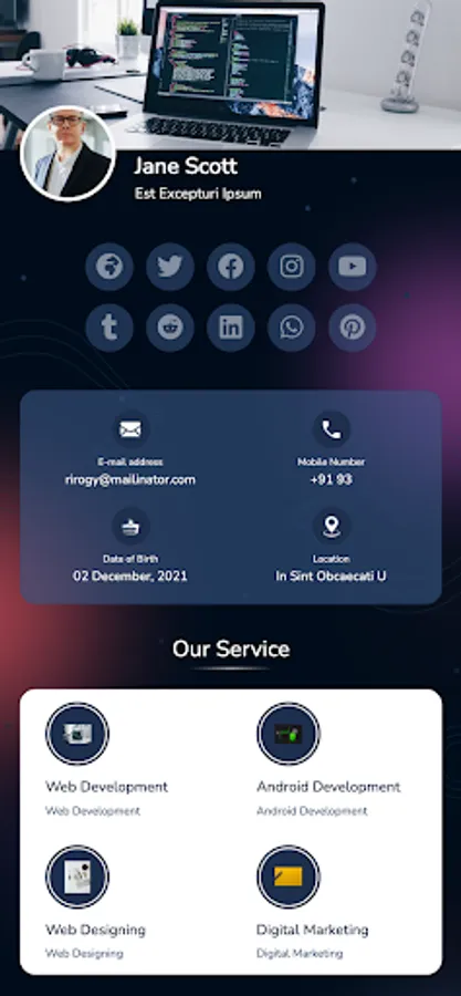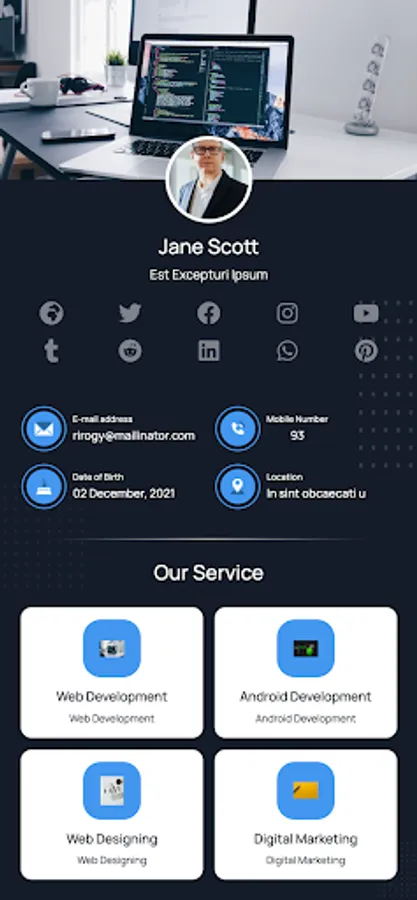 You can download the QR code and share the bio link on various social media platforms, email, forums, and more. Business card pro helps develop your professional relationship with full features.