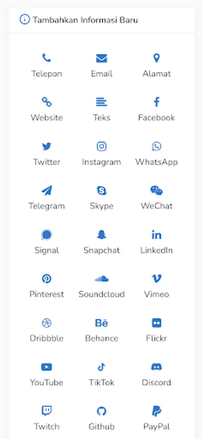 Prospective customers or business card recipients will get information about you (your personal profile bio or business brand), all they need to do is open the bio link or scan the QR Code, and choose a channel from the biolink page to contact you.