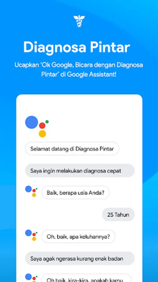 With Medical Voice, which helps the health diagnosis process more easily based on artificial intelligence technology that can speak Indonesian. Medical Voice is integrated with various health diagnosis databases as well as Google Assistant