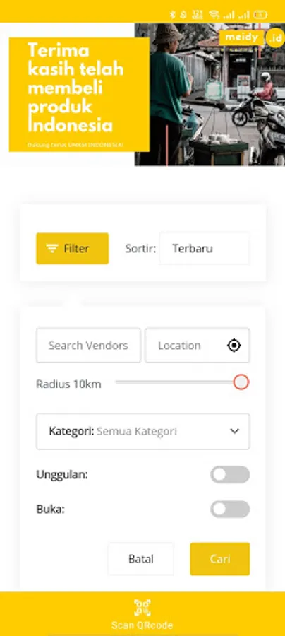 Meidy is a digital social platform through e-catalog that makes it easier for every business that has a place to run their business. Meidy.id's goal is to improve the quality of every business by digitizing it. Features that can be used by entrepreneurs are bookkeeping, ordering, purchasing, managing inventory, GPS, QR code. In difficult times like this, there is a need for innovation in the field of technology to improve the quality of sales for Indonesian MSMEs to survive running their businesses. PSBB has had a big impact on business actors. Many of them had to be forced to close their businesses because of this pandemic. Health may come first in this situation, but the economy must also be maintained. Meidy.id is a solution for every business actor who has a place of business. Meidy has features that support these business actors, namely, ordering via e-catalog, searching for the nearest store, keeping records for businesses and QR Code to make purchases easier.