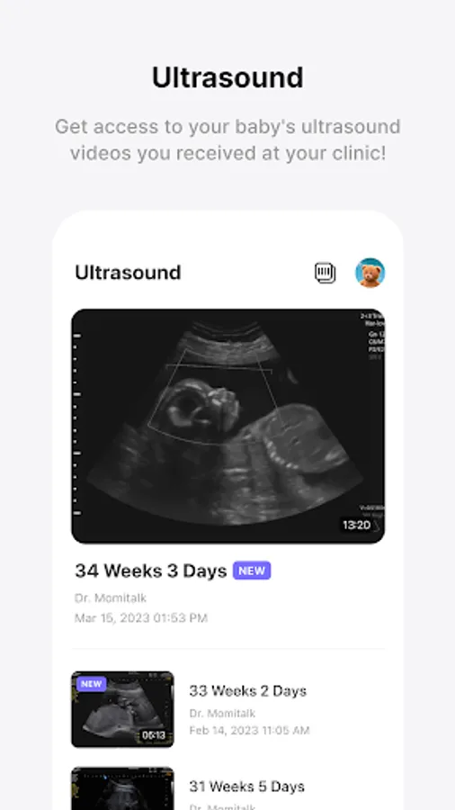 • Check your baby’s ultrasound video anytime, anywhere, right after your ultrasound exam!