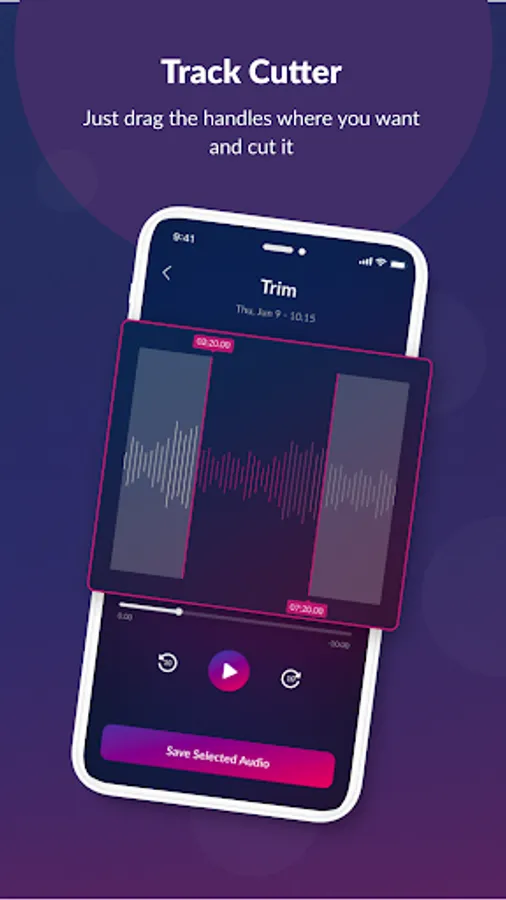 Trim audio, with this editor you can trim audio clips by length, time or position, export to many audio type, including MP3, WAV, AAC, M4A, AIFF, OGG, PCM and more. also you can make your audio cleaner with noice reduction.