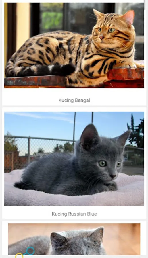 App berisi info nama-nama kucing atau jenis jenis kucing seperti kucing. Di dalam aplikasi ini akan dijelaskan mengenai macam-macam kucing dari seluruh dunia, antara lain: