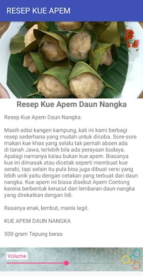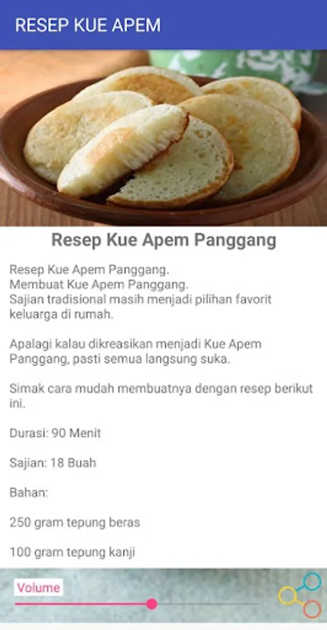 App untuk mendengarkan resep kue apem dan membaca resep kue tradisional apem.