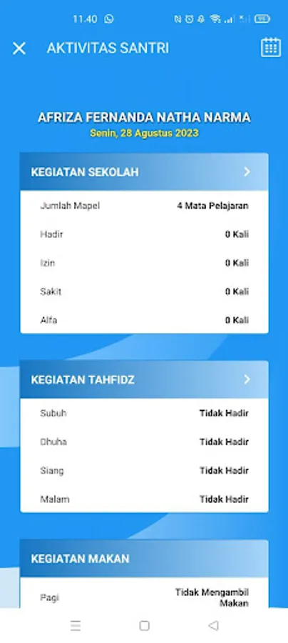 Muallimin Klego Islamic Boarding School student guardian application for use by student guardians to monitor their children who are studying