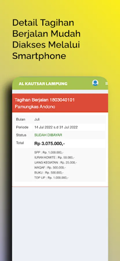 Applications that can be used by guardians / parents of students / students to be able to check pocket money / pocket money for students, bill payments, history, abilities and others that adapt to needs and technological developments.