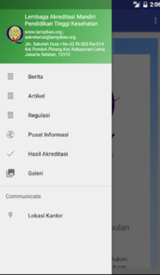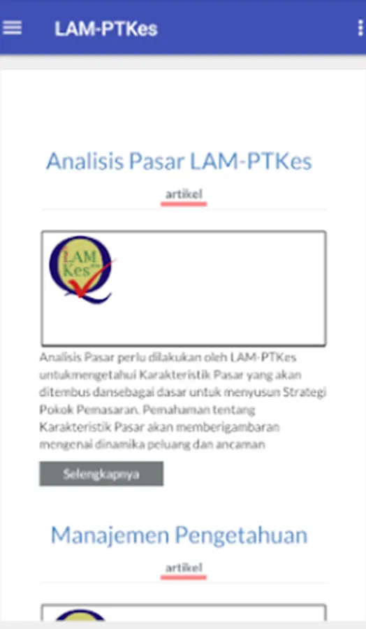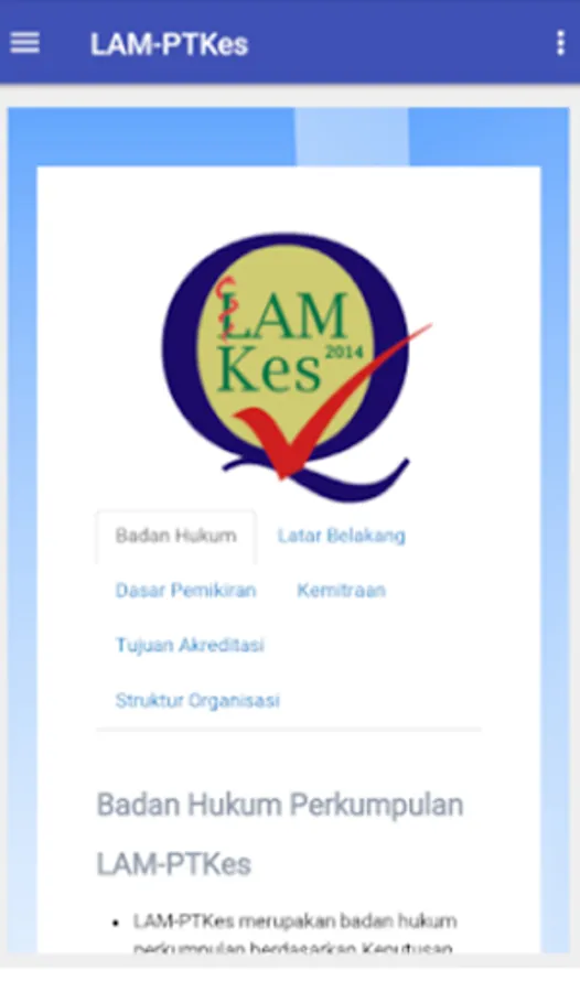 Mobile Apps LAM-PTKes is the first android mobile application launched by the Institute for Higher Education Accreditation Self Health to address the needs of information easier and faster.