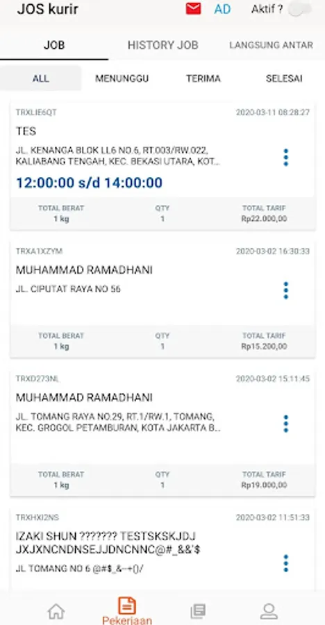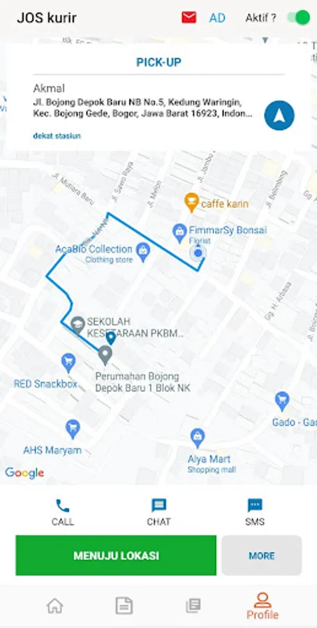 JOS KURIR is an Android-based application for JNE couriers. This application helps couriers to serve instant courier services for the community.