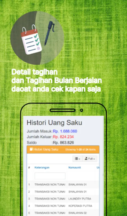 Application that can be used by guardians/parents of students/students to be able to check student allowances/pocket money, payment bills, history, abilities and other things that adapt to technological needs and developments.
