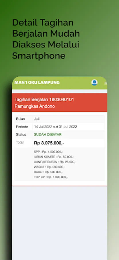 Applications that can be used by guardians / parents of students / students to be able to check pocket money / pocket money for students, bill payments, history, abilities and others that adapt to needs and technological developments.
