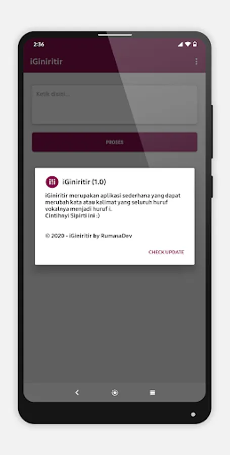 iGiniritir is a simple application that can change words or sentences whose entire vowels become "i".