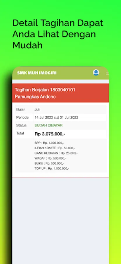 Applications that can be used by guardians / parents of students / students to be able to check pocket money / pocket money for students, bill payments, history, abilities and others that adapt to needs and technological developments.