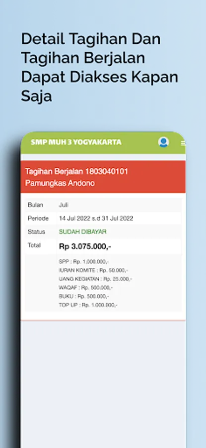 Applications that can be used by guardians / parents of students / students to be able to check pocket money / pocket money for students, bill payments, history, abilities and others that adapt to needs and technological developments.