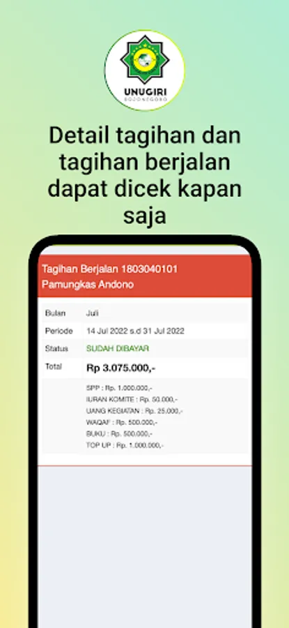 An application that can be used by guardians/parents of students/students to be able to check students' allowance/allowance, payment bills, history, abilities and other things that adjust to the needs and developments of technology.