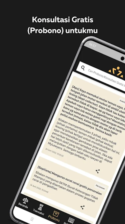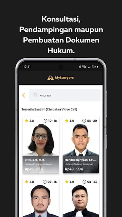 Hookum MyLawyers is the First Online Legal Consultation Application (Free and Paid) in Indonesia with Audio Visual, Chat and Face-to-face Technology equipped with Legal Document Services for Individuals, Groups or Companies. Our lawyers/Legal Consultants are ready to serve you. You can take advantage of the Free Consultation/Probono in the App which will be answered by our Advocates/Legal Consultants.
