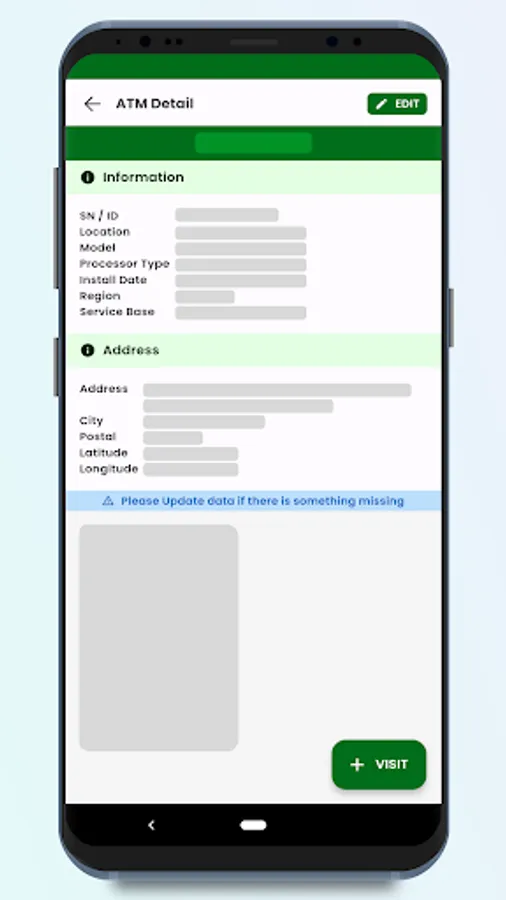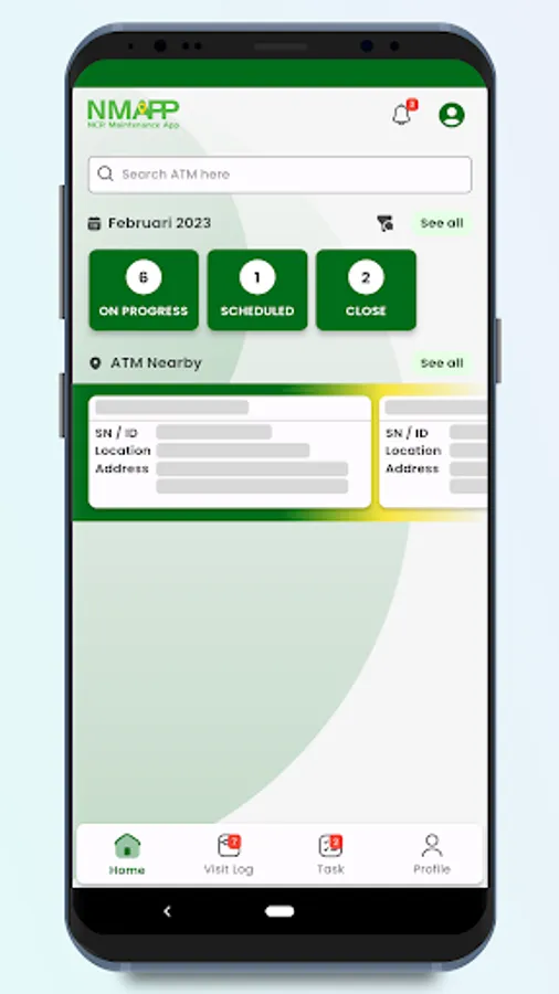 Anda akan melihat list ATM terdekat dengan titik koordinat anda berada. Memudahkan untuk memulai pekerjaan. (apabila data ATM sudah dilengkapi dengan titik koordinat)
