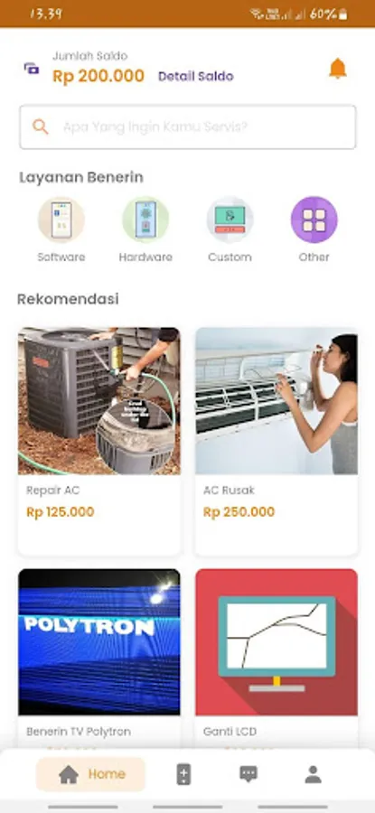 With this service rental application, you can hire the services of a repairman to repair electronic equipment easily, quickly, easily, and practically, of course. all you need to do is register yourself in the Benarin application, then select the service you need, then the handyman you ordered will automatically come to your house.