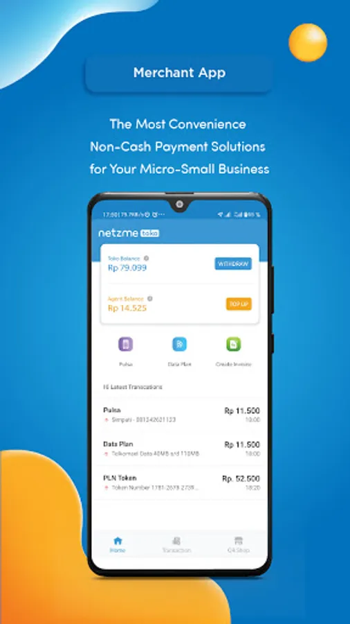 The main advantage of the Netzme store is that User Merchants can transact without certain restrictions, can receive, view, and record payments received from Consumers/Customers. Features available at the Netzme Store are Static and Dynamic QRIS, POS, Invoice Maker, PPOB, Transaction Reports, and Cash Withdrawal to any bank throughout Indonesia.
