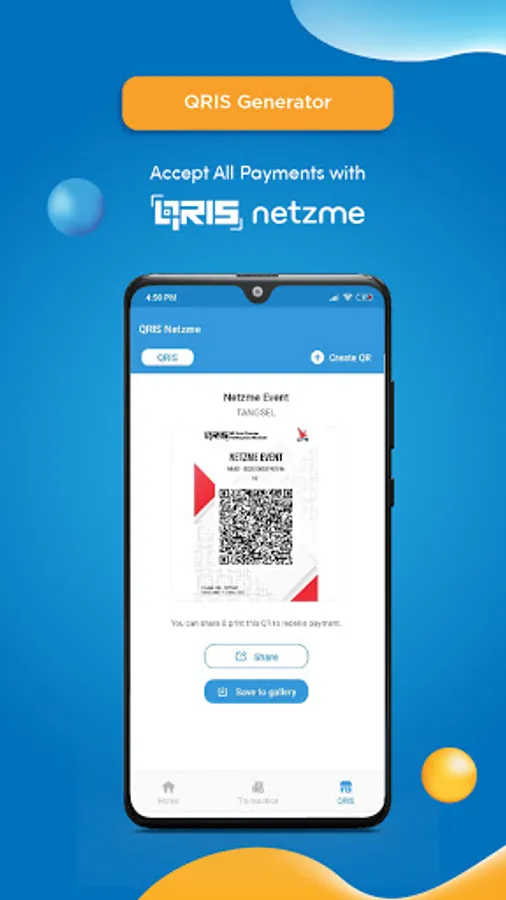 By using QRIS, Merchant Users of this application can easily accept payments using the QRIS code statically and dynamically from this application, which can be paid through various banking applications or any payments from Indonesia or outside Indonesia that already support QRIS payments, and of course all transactions automatically recorded in your Netzme Merchant Shop account!
