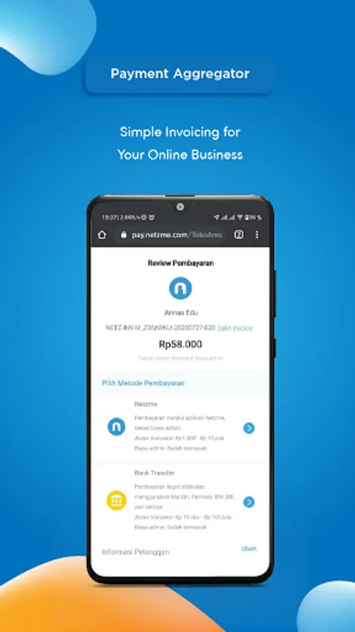 Billing can be made based on the needs of Merchant Users such as one-time only payments or periodic payments, bills that can be used many times. This invoice can accept online payments without a website and is distributed via email, Whatsapp, Social Media, SMS or Netzme Chat.