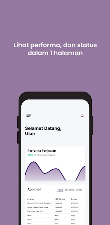 - Melacak status pengajuan seperti penjualan, promo, dan lain-lain