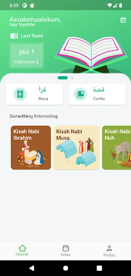 Ajari also has a feature to read the story of the prophet which will teach students the moral messages contained in the story along with a quiz feature that can evaluate the extent of the moral and knowledge messages that have been learned by the students.