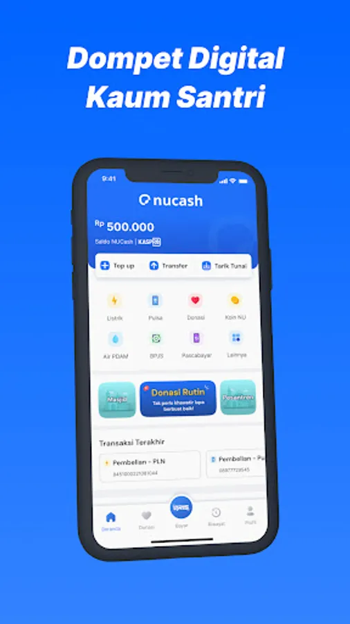 Nucash is a platform based on an Android or iOS smartphone that is supported by electronic money services, and functions to accommodate money in digital form and can be used to make purchases and payments on the Nucash smartphone application as well as to make various payments, purchases and donations.