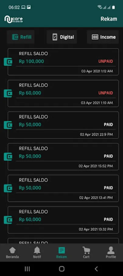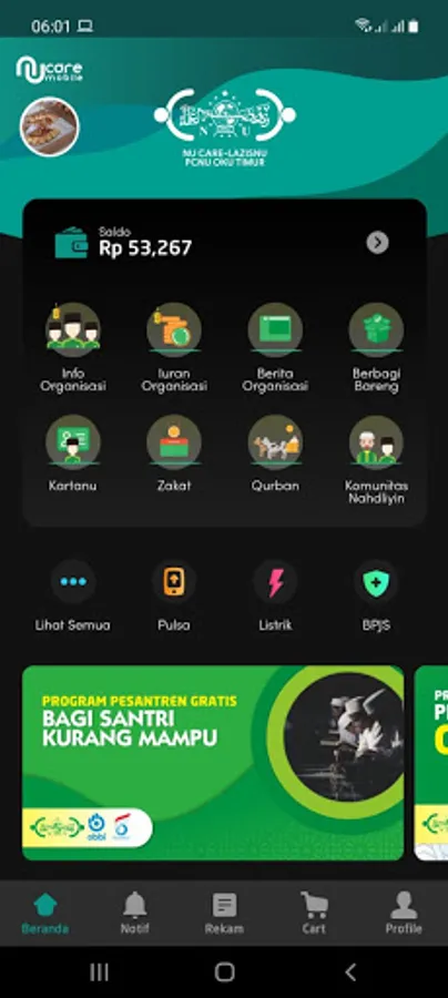 5. Purchase pulses and PPOB payments (Postpaid PLN, BPJS, PDAM, Indihome, etc.) where every transaction you also donate to NU CARE-LAZISNU amounting to 10% of the net profit of each transaction
