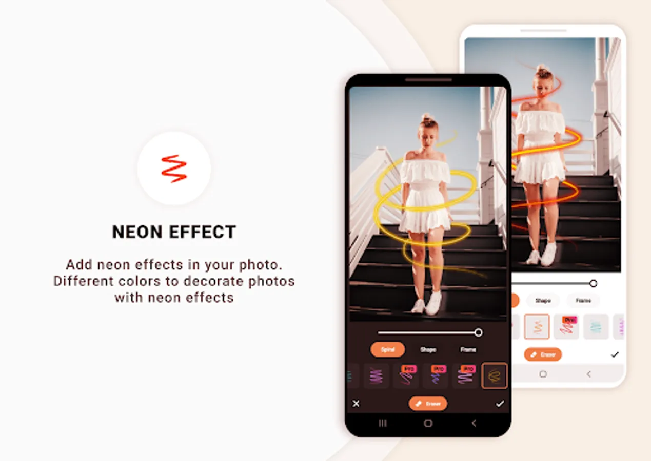 - Neon Photo effect: Add neon effects around photos. Different colors to decorate photos with neon effects.