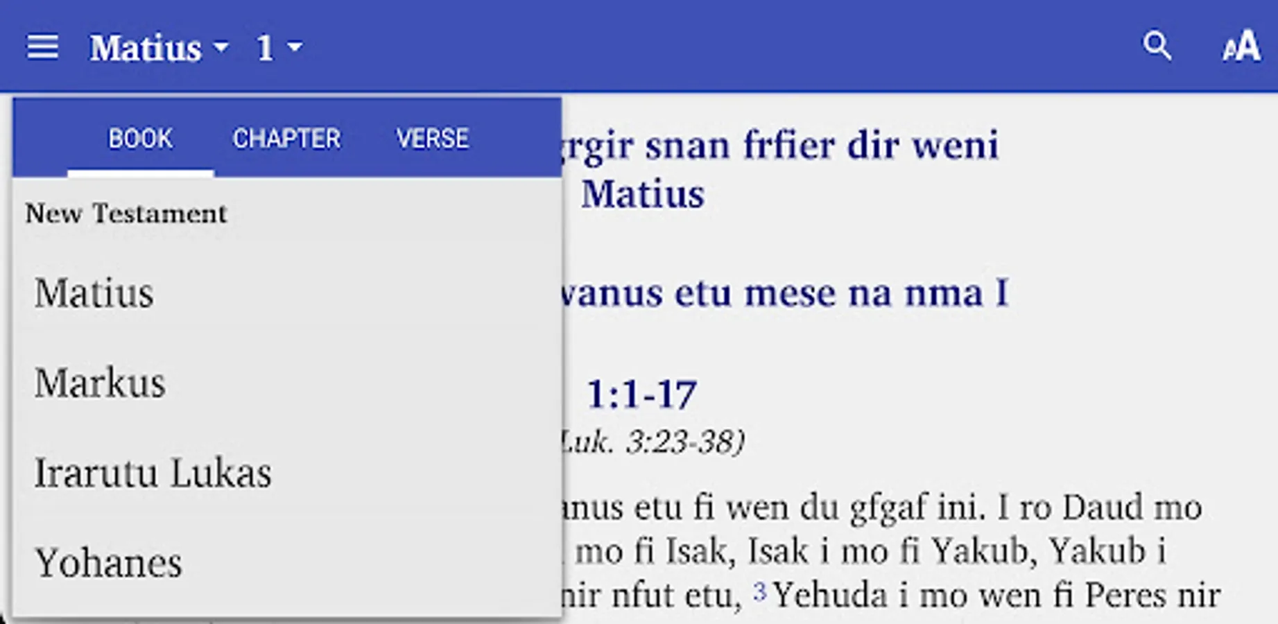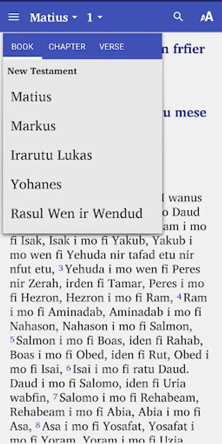 Porsion terdiri dari 5 kitab perjanjian baru bahasa Irarutu