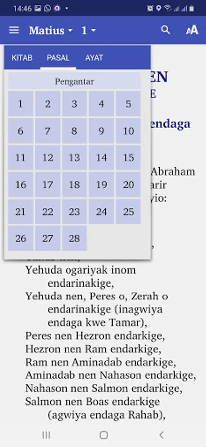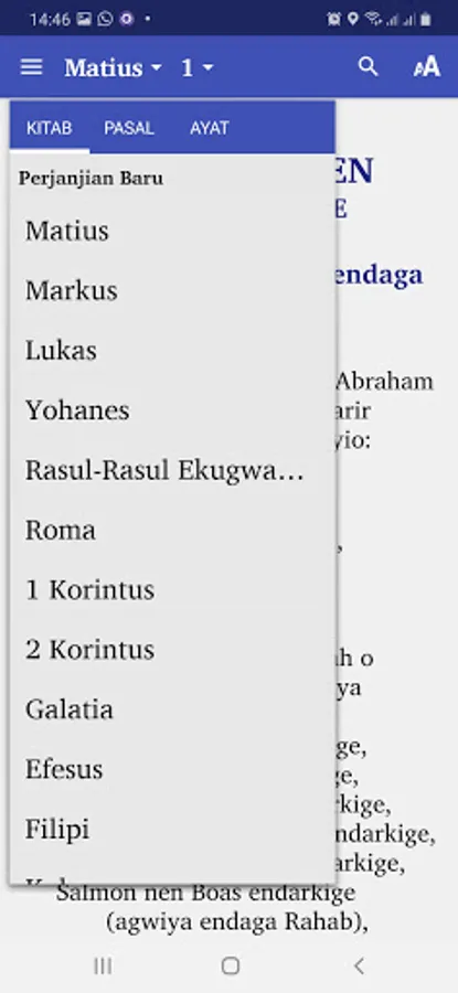 The text contains the New Testament with 27 books ranging from Matthew to Revelation