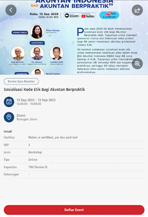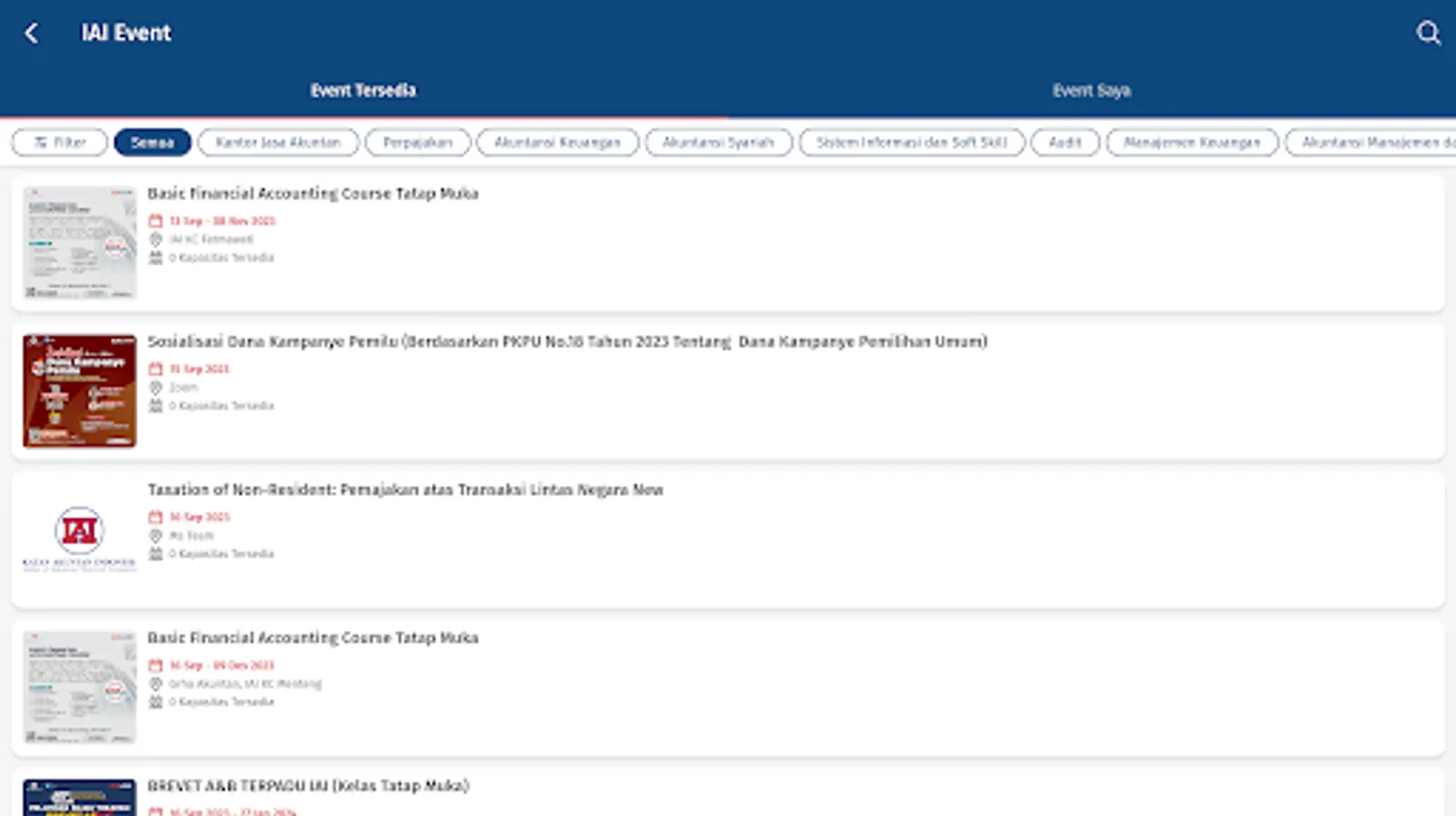 This application helps members and non-members of IAI to be able to participate in activities aimed at the accounting profession and non-accounting professions who want to add knowledge related to accounting and finance.
