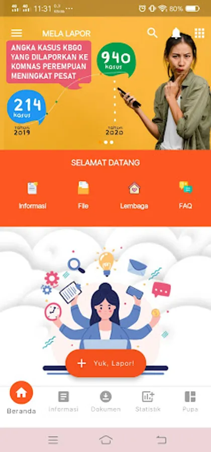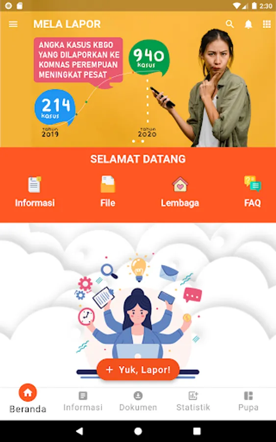 Mela Report is an application that will help PUPA Friends to access information and referral services for cases of Online Gender Based Violence (KBGO). We believe that no matter how small your voice is, it will be heard. Let's speak.
