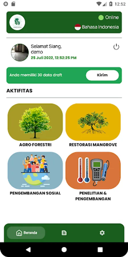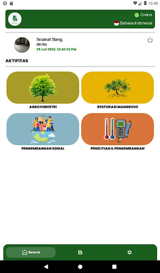 This app will collect data from various activities, such as land assessment, seed procurement, planting, monitoring, replanting, participative patrol, training, comparative study, FGD and science research & development