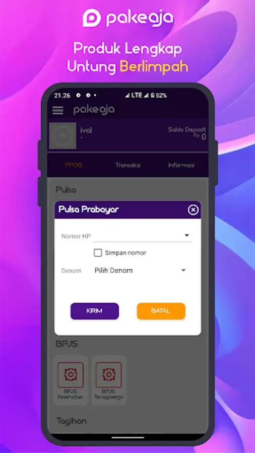Pake Aja is an application for carrying out credit top-up transactions, data packages, PLN electricity tokens, E-Money balances and bill payments which include PLN postpaid, BPJS, Telkom, Multifinance, PDAM, and postpaid credit. The Pake Aja application was created to make it easier for users to make payment transactions and top up credit, whether for personal use or for selling as a credit agent.