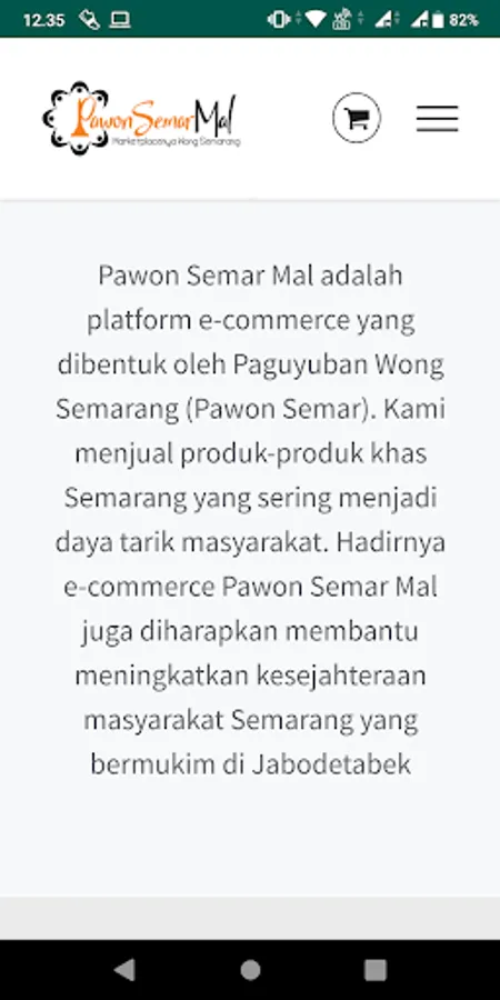 Pawon Semar Mal is an e-commerce platform formed by the Semarang Wong Society (Pawon Semar). We sell typical Semarang products which are often the main attraction of the community. The presence of Pawon Semar Mal e-commerce is also expected to help improve the welfare of the Semarang people who live in Jabodetabek