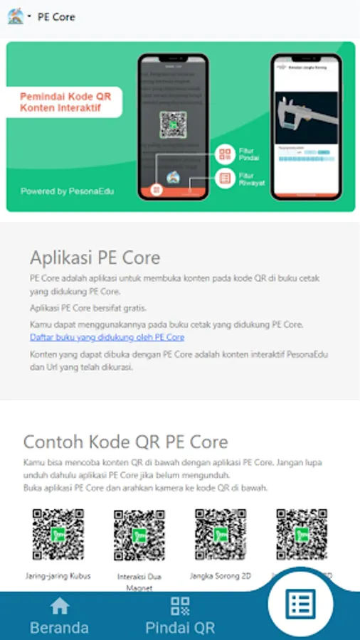 Application to read QR codes from books and display interactive content from PesonaEdu.
