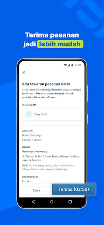 • Mengambil dan menolak pesanan sesuai ketersediaan waktu Anda